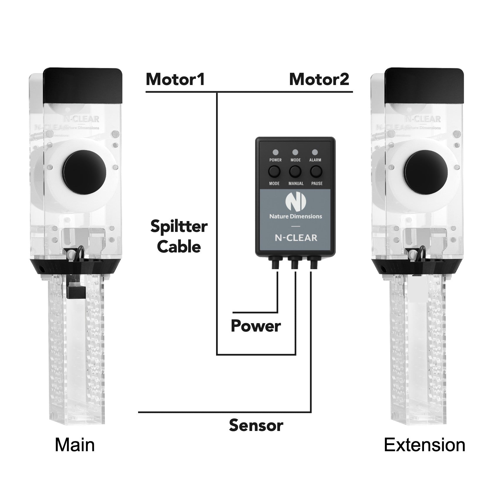 - The extension filter must be connected to a main filter. It does not include a power adapter, controller, or sensor. A dual-link cable is included.